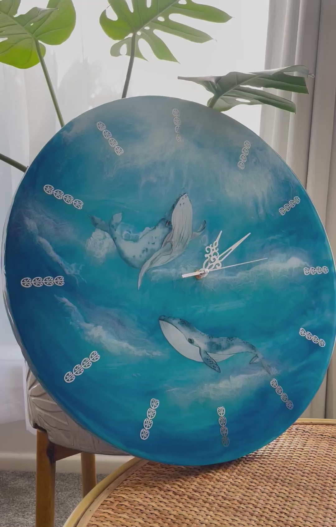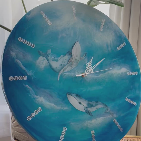 Bring the beauty of the ocean into your home with this one of a kind 50cm resin wall clock, handcrafted with three layers of resin to create incredible depth and movement. Featuring two majestic whales swimming through swirling blue waves, this piece is more than a clock, it’s functional art that transforms any wall into a statement.